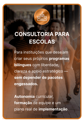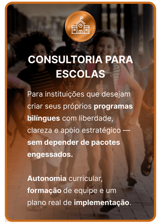 Entregamos transformação real: para adultos que querem falar inglês e para escolas que desejam estruturar programas bilíngues, com liberdade e visão.